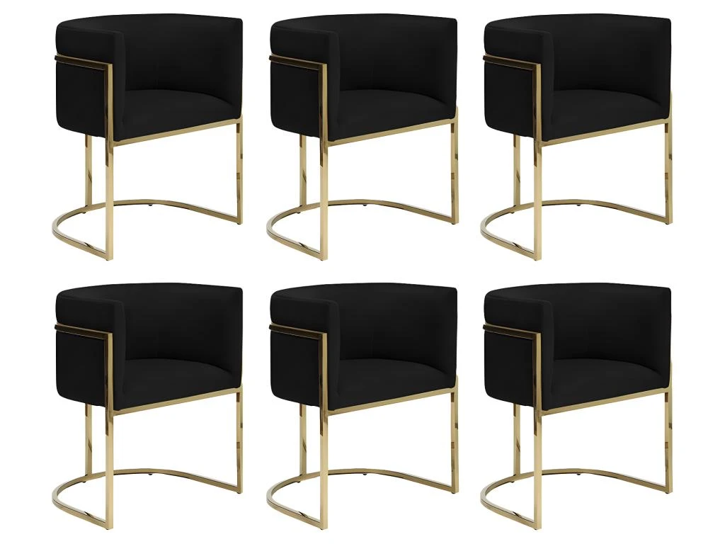 La chaise PERIA propose une assise bien englobante et rembourrée. La douceur du velours offre encore plus de confort pour des longues heures de conversations autour d’un repas. Son pied en acier inoxydable chromé doré soutient l’assise avec un design original aux formes arrondies et part de l’arrière du dossier jusqu’au sol.