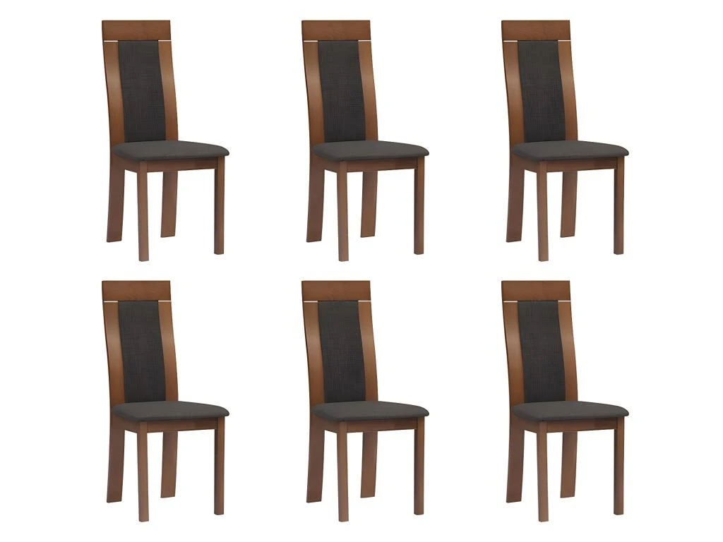 Lot De 6 Chaises BELINDA – Hêtre Et Tissu – Coloris : Noyer Et Anthracite