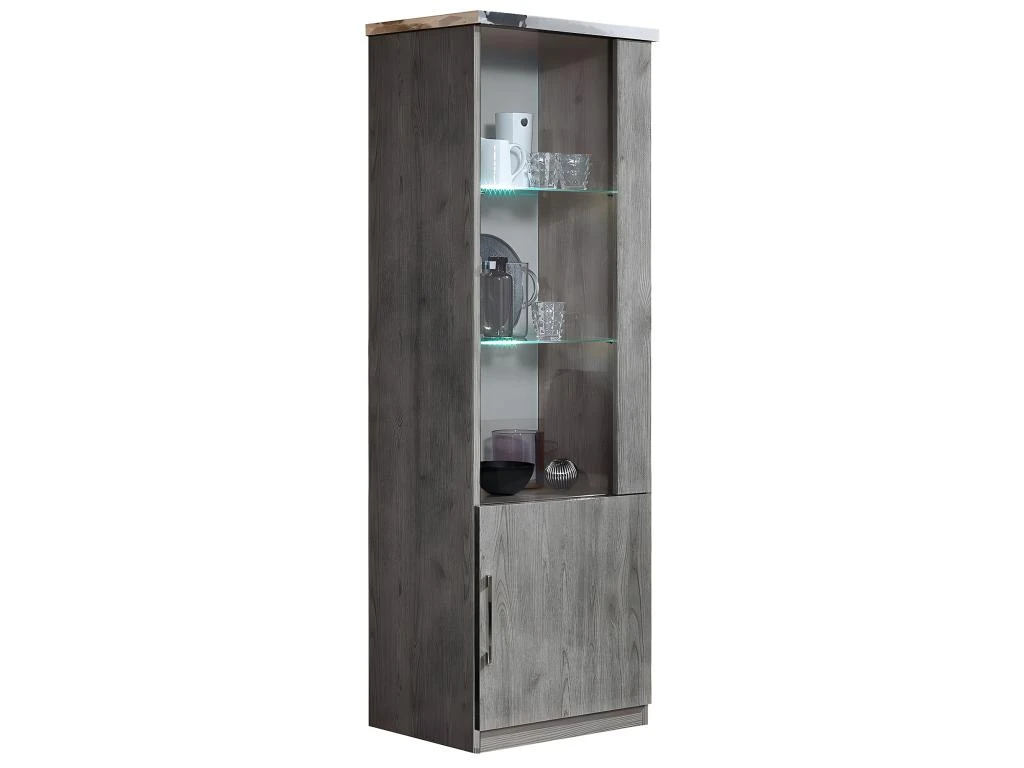 Vitrine Droite 1 Porte Aspect Chêne Gris Laqué de la gamme Naktam.