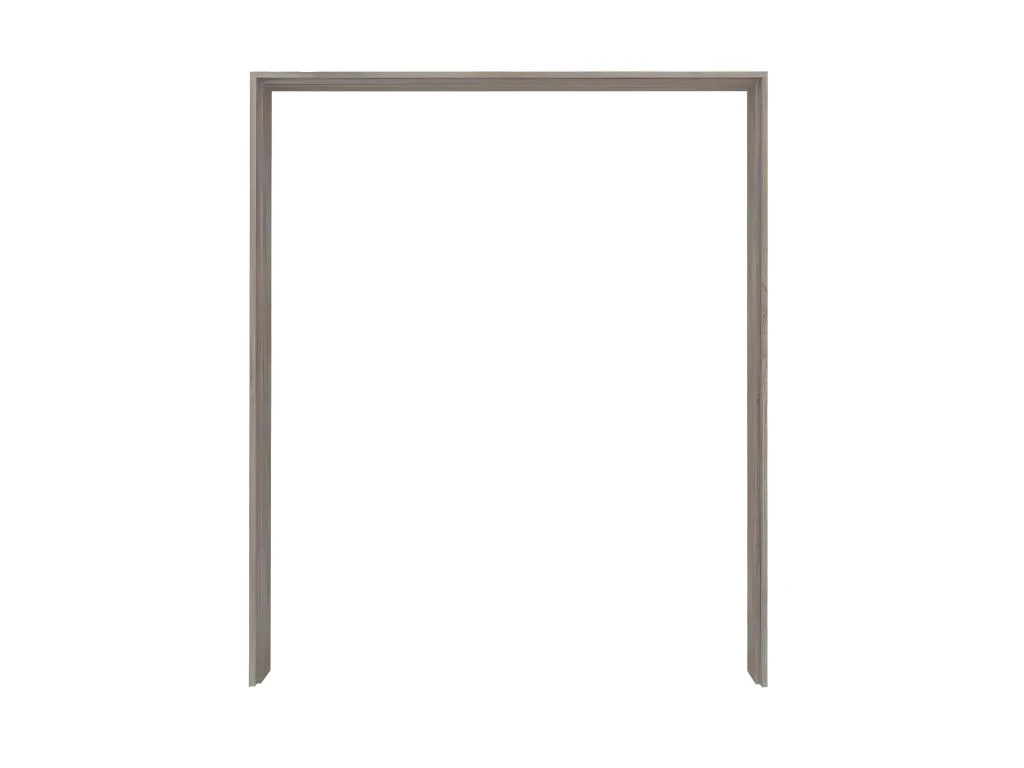Structure en panneaux de particules, décor laqué blanc mat et bout de chêne. Cadre et portes ép.16mm, coulisses métalliques, option frein incluse. Arche ép.22mm + doublure 25mm avec éclairage led.