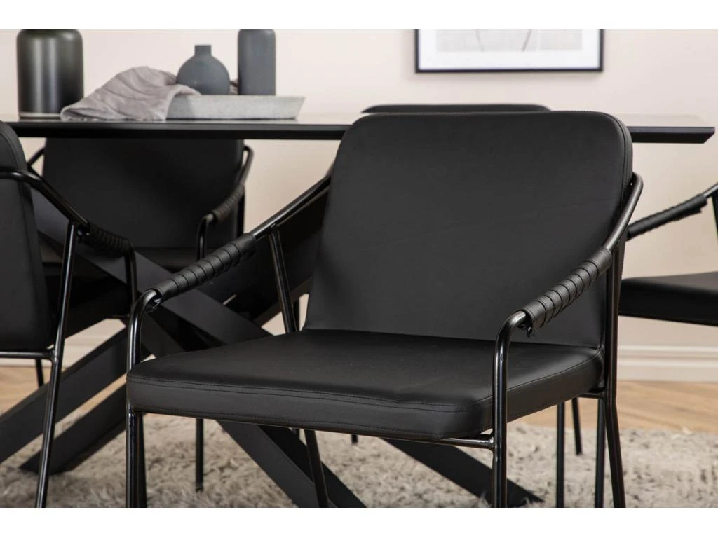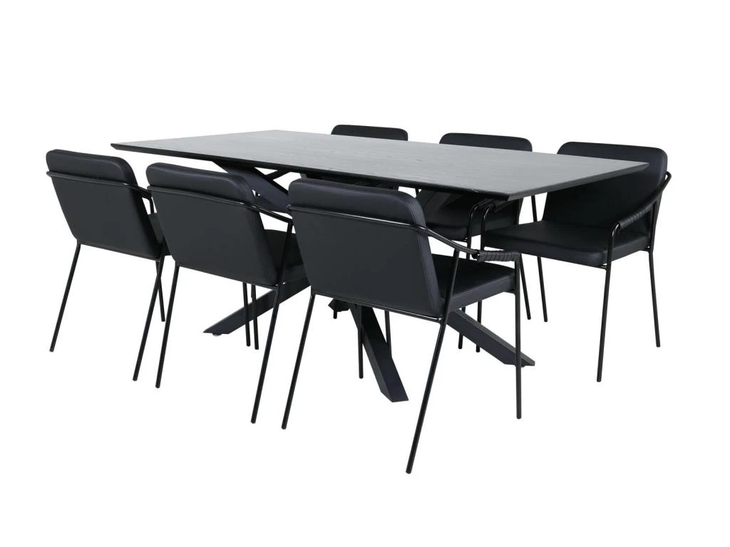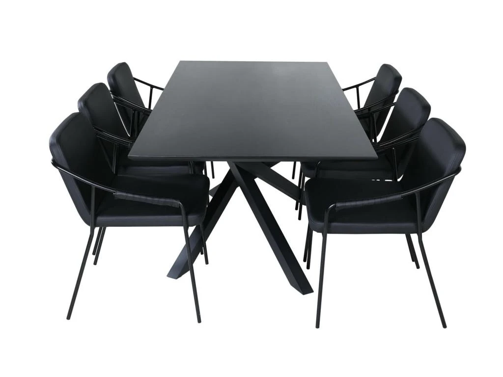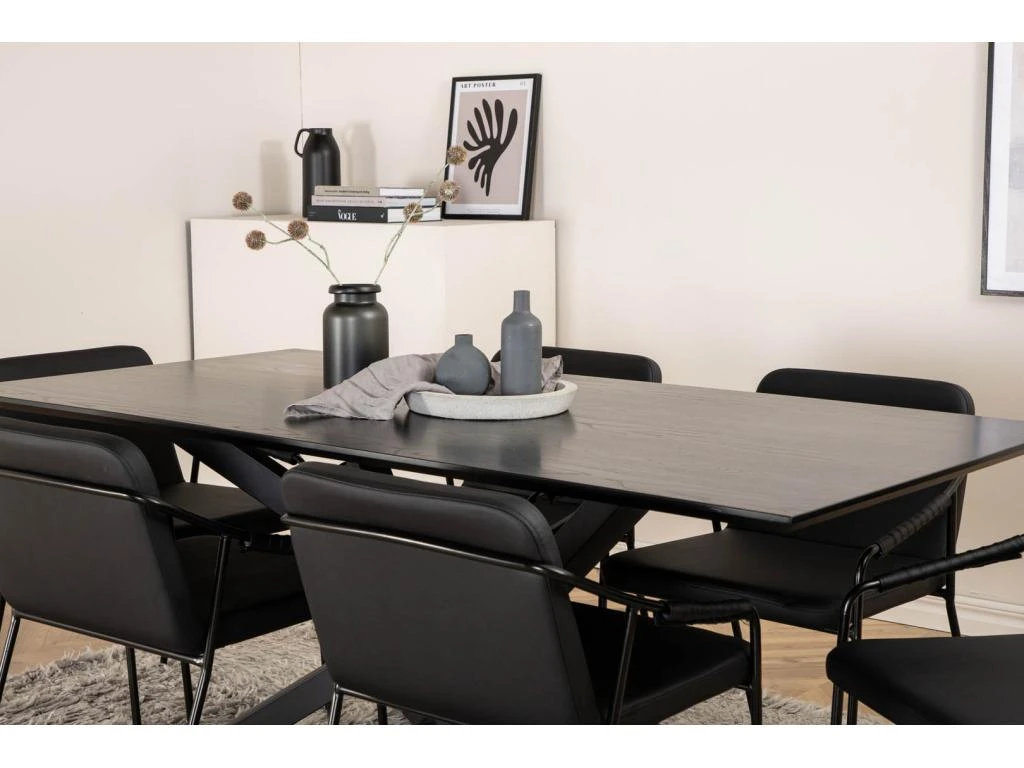 Jepara Ensemble Table, Table Teck Et 6 Velvet Deluxe Chaises Grisclair, Noir.