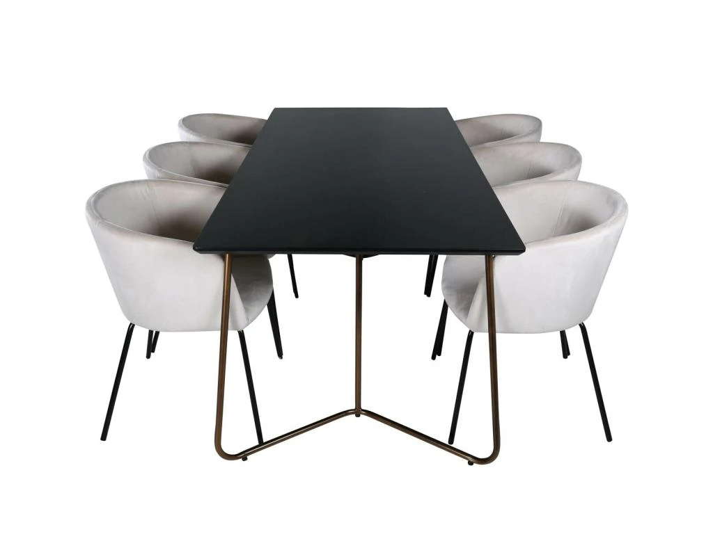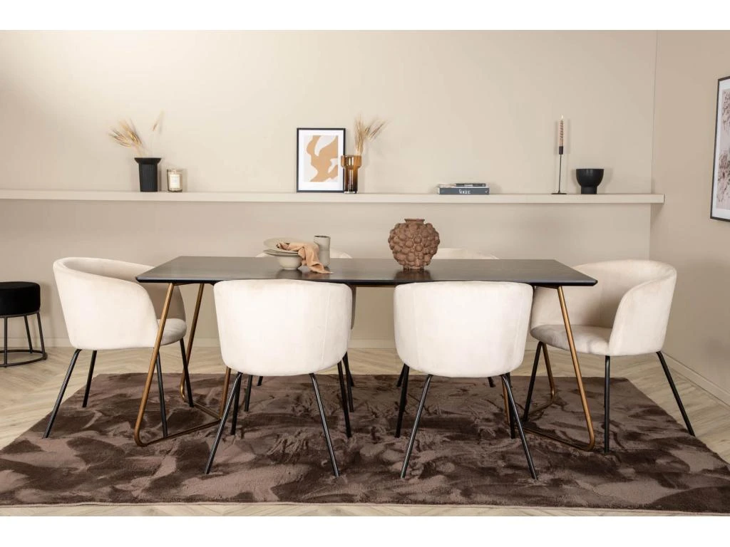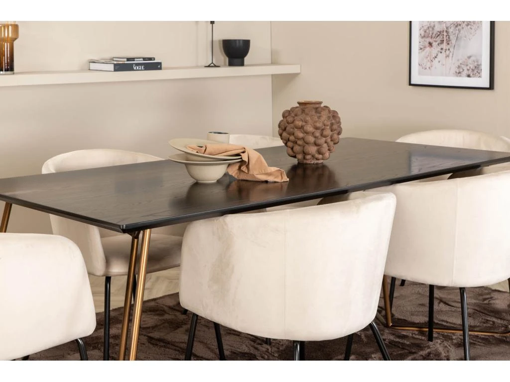 BiancaROWW Ensemble Table, Table Chêne Plaqué Blanc Washed Et 4 Emma Chaises Velours Gris,noir.