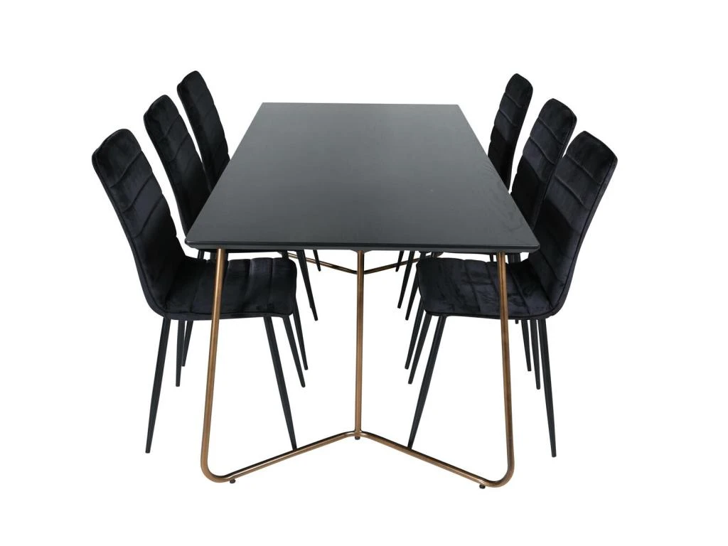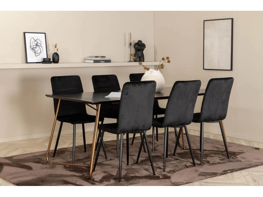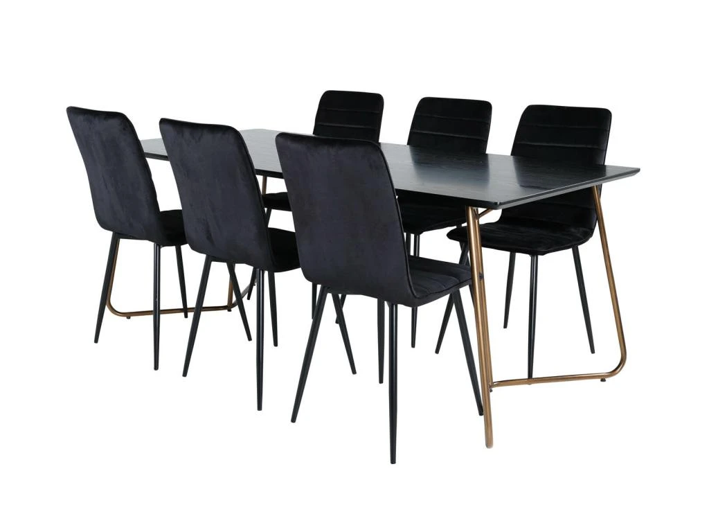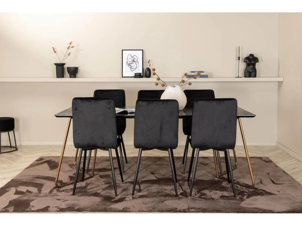 DippØ115BLBL Ensemble Table, Table Noir Et 4 Berit Chaises Velours Noir.