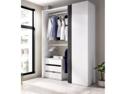 Armoire Sciliar, Structure Pour Dressing, Portemanteau Ouvert, 141x52h205 Cm, Blanc Et Anthracite