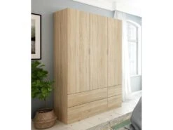 Armoire Weymouth, Meubles De Chambre Avec 3 Portes Et 2 Tiroirs, Cintre, 135x52h200 Cm, ChĂȘne