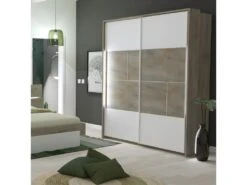 KALKE – Grande Armoire Ă Portes Coulissantes – Miroir – 5 Ă©tagĂšres + Tringle – 150x61x200 Cm