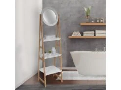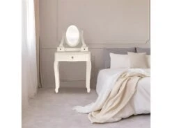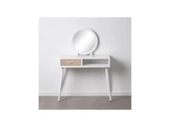 Coiffeuse 2 Tiroirs Blanc/Bois Ă Led – QIZ – L 100 X L 44 X H 140 Cm