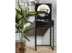 ALLYS – Coiffeuse Moderne – 90x50x140 Cm – 3 Tiroirs – Grand Miroir Ave 12 LED – Table De Maquillage