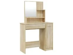 Coiffeuse Avec LED ChĂȘne Marron 90x50x132,5cm Bois D’ingĂ©nierie