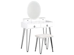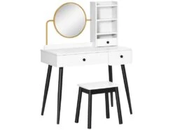 Coiffeuse Avec Tabouret Et Miroir Pivotant Moderne 100 Cm Rond Blanc Doré 19_0000184