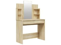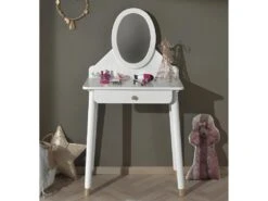 Coiffeuse Avec Miroir Tiroirs MDF Blanc 80x40x140 Cm ML-DESIGN