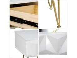 Coiffeuse Avec Miroir Et Tiroir – MDF Et MĂ©tal – Blanc LaquĂ© Et DorĂ© – VONALI De Pascal Morabito