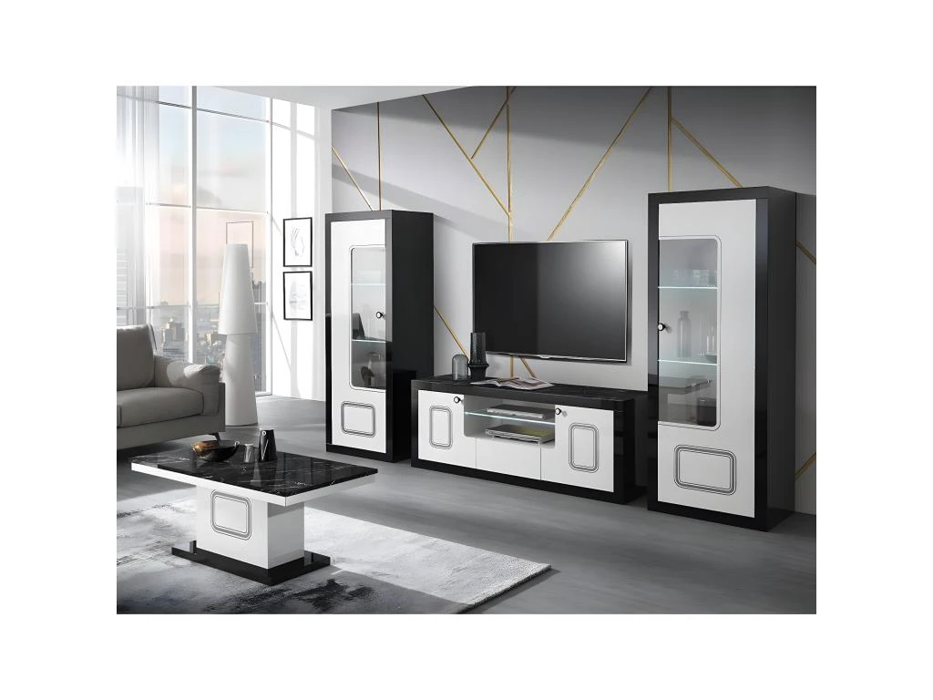 Vitrine 1 Porte Gauche Laqué Noir et Blanc de la gamme Robbie.
