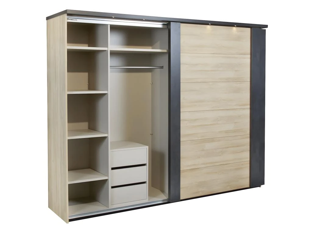 Avec son éclairage Led inclus, vous aurez enfin une armoire dressing classe et pratique. A compléter avec les meubles de la gamme Siwa, pour une chambre harmonieuse et à la pointe de la tendance.