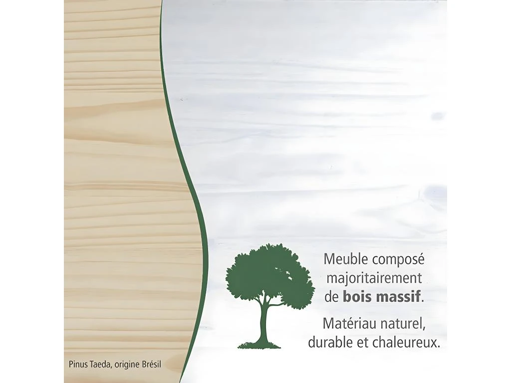 La finition vernis blanc laisse apparaître le veinage du bois. Il s’agit d’une finition transparente.