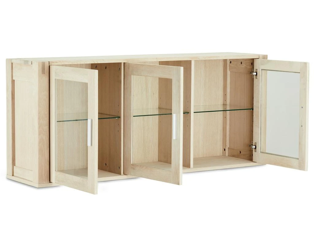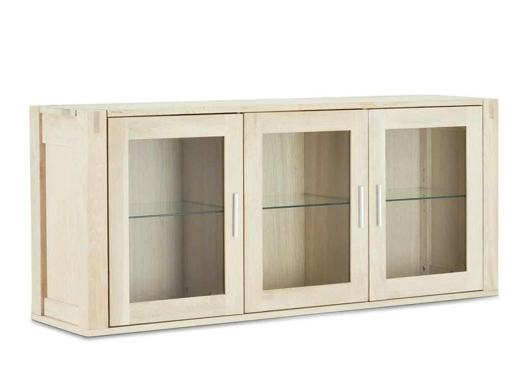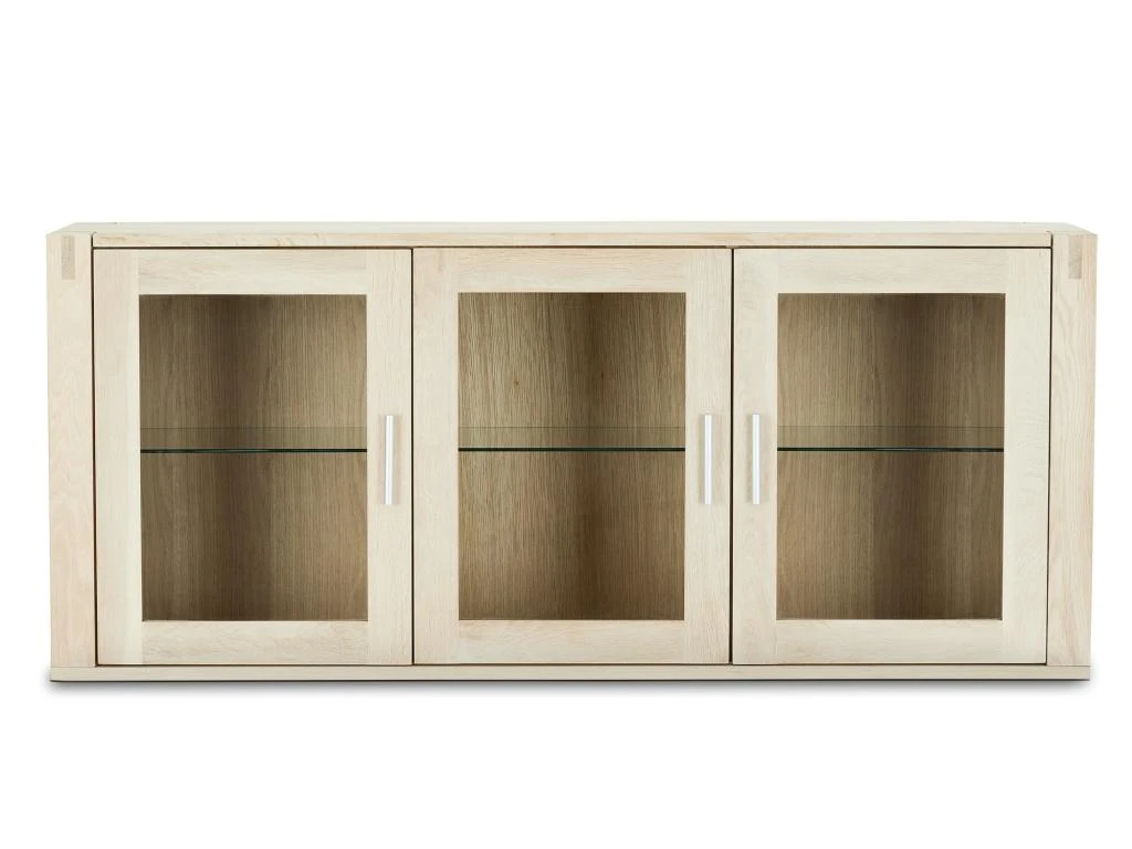 Amaretta Armoire Vitrine 3 Portes, Vieux Blanc, Vintage Patiné, Largeur 142 Cm, Hauteur 200 Cm.
