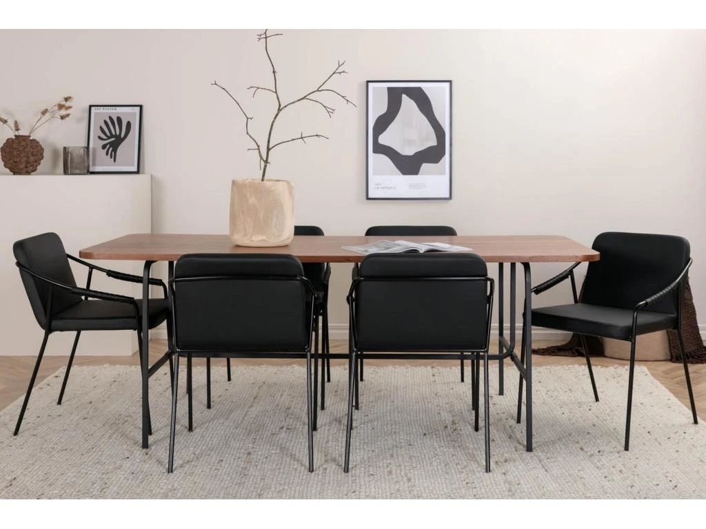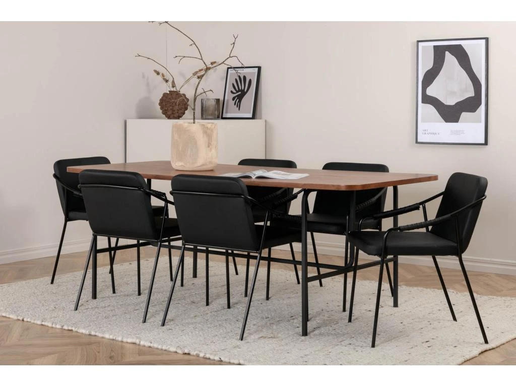PiazzaBLBL Ensemble Table, Table Noir Et 6 Tvist Chaises Similicuir PU Noir.