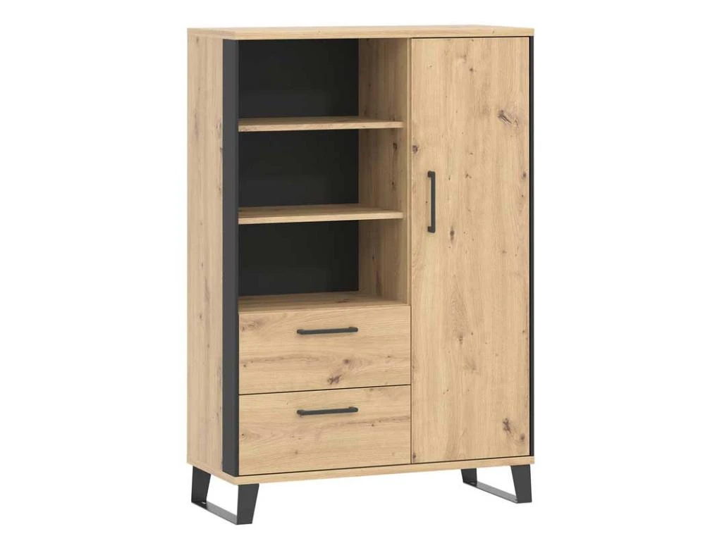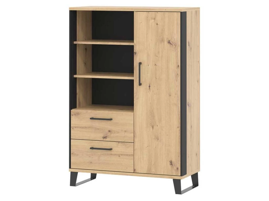 Vaisselier Design AOMORI 2 Tiroirs, 4 Portes, Coloris Blanc Et Gris Mat