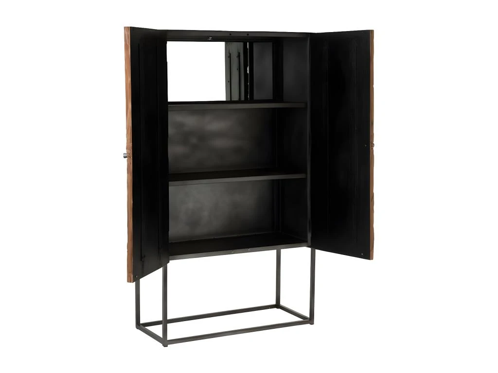 La structure en métal promet robustesse et agrément visuel unique à cette armoire de salon.