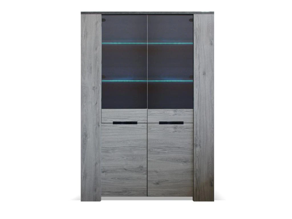 Vitrine Haute Collection BOWIE. Couleur Chêne Et Noir. LED Incluses
