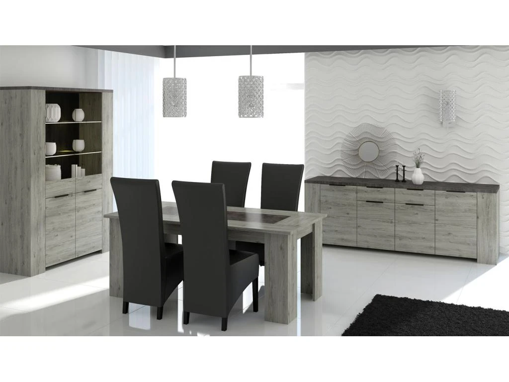 Vaisselier Industriel SPEBO 2 Tiroirs, 2 Portes Et 1 Niche, Coloris Noir Mat Et Chêne Wotan