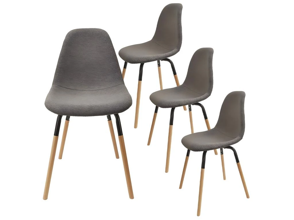 – 4x Chaises Tissu Gris Chiné Foncé et Bois Fluk.