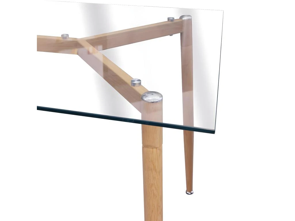 Un ensemble tendance et pratique ! Propose un mélange élégant de matières entre le plateau en verre transparent et son piétement métallique aspect bois du plus bel effet, et ses chaises au style scandinave.