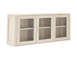 Les ouvrants se manipulent par la prise de main au design pur et au goût du jour, derrière les 2 portes en verre trempé de 4 Millimètres à l’encadrement original (dépourvu de cadre central) vous disposerez vos plus beaux objets de déco sur les 2 étagères en verre (épaisseur 6 millimètres).