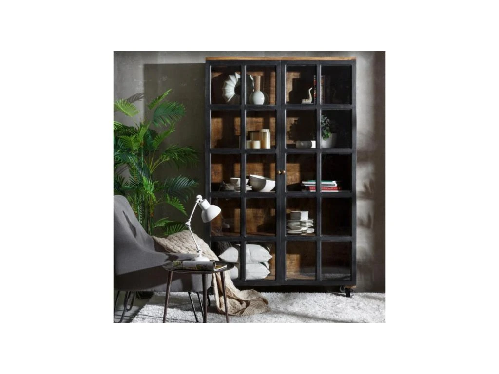 Toutes les caractéristiques du style mobilier Industriel se retrouvent sur cette vitrine 2 portes au look exceptionnel.