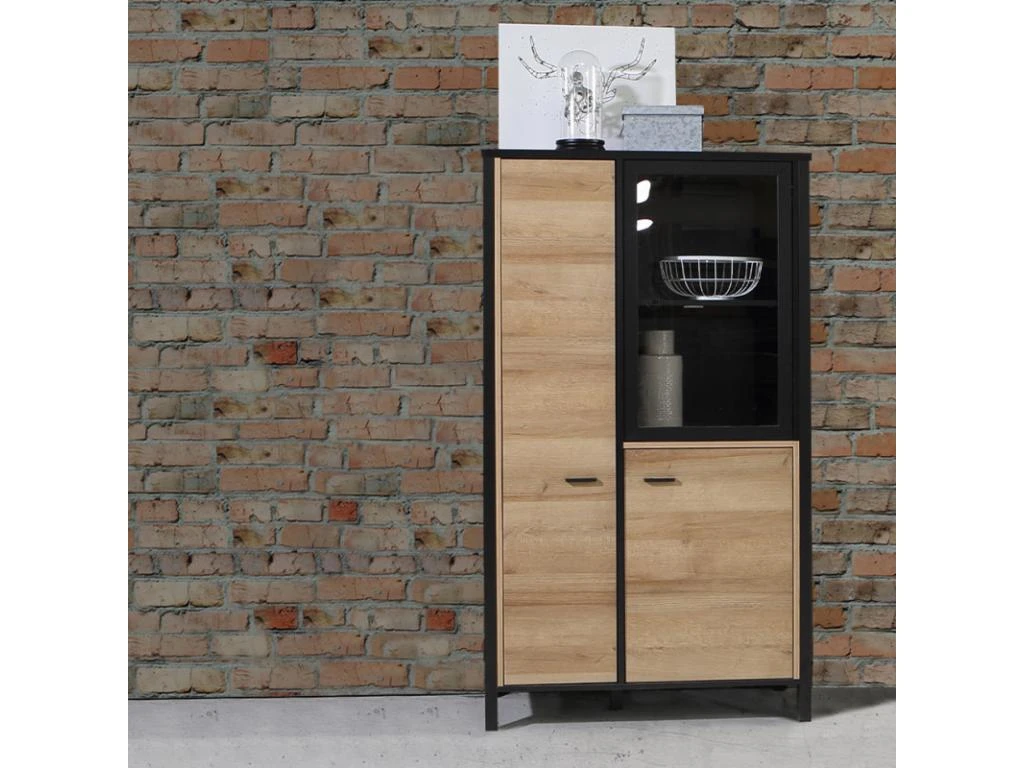 À la fois tendance et raffinée, cette vitrine ira à la perfection chez vous ! Vous pourrez tout aussi bien l’installer dans votre séjour que dans votre salle à manger ou même dans votre bureau. Ses grandes portes cachent des espaces de rangements qui font de lui un meuble pratique et fonctionnel, vous pourrez ainsi ranger toutes sortes affaires sur ses étagères ! Vous pourrez également ranger derrière sa porte vitrée des objets de décoration afin de le mettre en avant et seront ainsi visible par tous. Sa couleur chêne est parfaitement mise en avant par son cadre noir qui apporte du contraste et de la finesse.