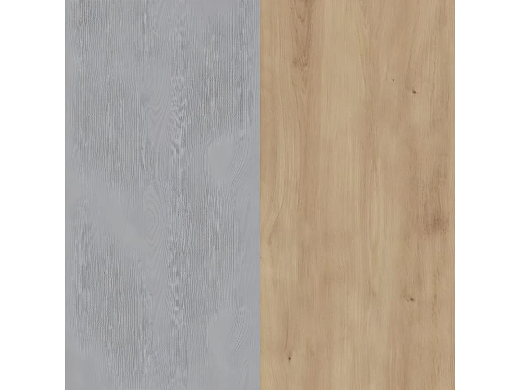 - COMPOSITION : Structure en panneaux de particules 15, 18 et 22 mm d’épaisseur. Revêtement papier décor chêne gris et chêne clair. Panneaux arrière en HDF 2 mm. Portes réversibles (dont 1 avec verre trempé) avec système soft close. Poignées en plastique noir.