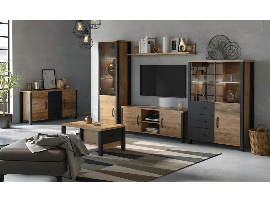 Ses belles finitions et son aspect bois lui confèrent un aspect moderne et haut de gamme. Avec ses dimensions de 56x191x43, cette vitrine rectangulaire offre amplement d’espace de rangement pour exposer vos objets de valeur et vos collections.