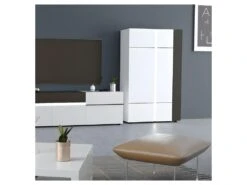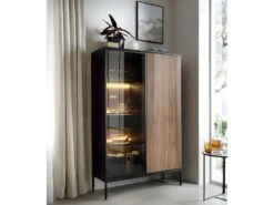 Vaisselier 2 Portes 4 Niches Blanc Mat Décor Bois Poignées Noir – LEANE