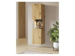 Vitrine Haute Collection BOWIE. Couleur Chêne Et Noir. LED Incluses