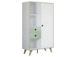 Amalie Armoire Avec 2 Portes Et 1 Tiroir En Blanc, PlaquĂ© ChĂȘne Et ChĂȘne Massif DĂ©lavĂ© Blanc.